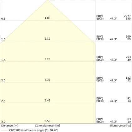 Ce downlight a un angle de 95°degrés, il peut donc être utilisé dans de nombreux environnements de travail et/ou dans les maisons.