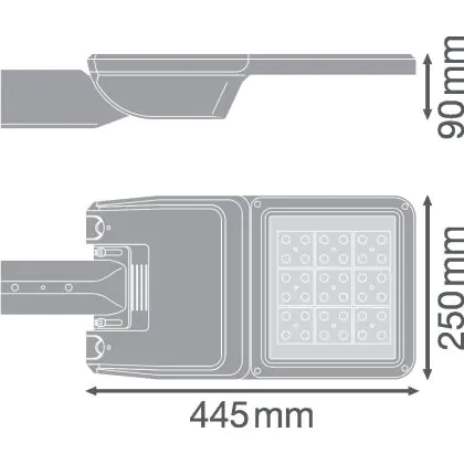 Investissez dans une solution à long terme, de 100000 heures en choisissant le Ledvance Éclairage public LED Flex Petit RV25ST Gris 13W 1780lm 25x145D - 740 Blanc Froid | IP66 – Asymétrique.