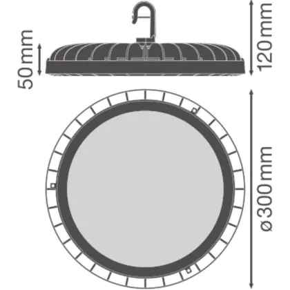 Cet high bay a une IP de IP65 – Résistant à la poussière et à l'eau (jets d'eau) et un IK de IK06 - 1 Joule.