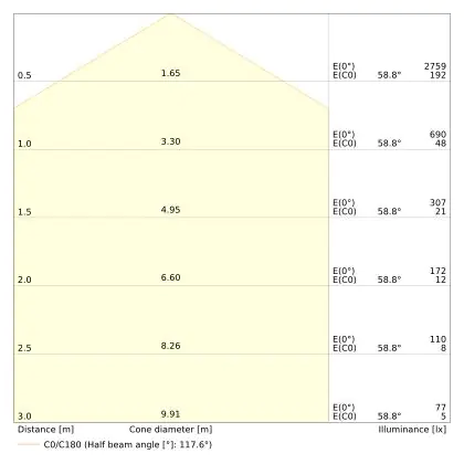 ![]() Le code couleur se compose de l'indice de rendu des couleurs (IRC) et de la température de couleur (Kelvin). Le premier chiffre indique le rendu des couleurs (1 = très mauvais rendu des couleurs, 9 = meilleure authenticité des couleurs). Le deuxième et troisième chiffre indiquent la température de la couleur. Exemple : Le code couleur "830" indique que la lampe a un bon rendu des couleurs (8) et une couleur de lumière blanche chaude (30 = 3000K). |