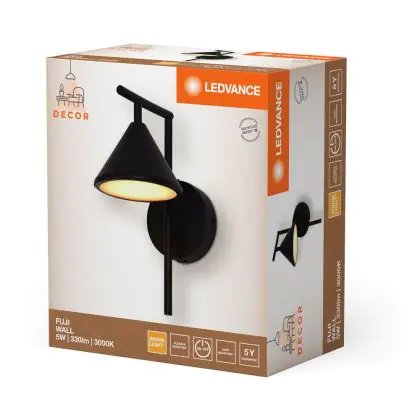 Description Ledvance LED Decor Applique Murale Fuji Noir 5W 180lm - 930 Blanc Chaud| Meilleur Rendu Des Couleurs