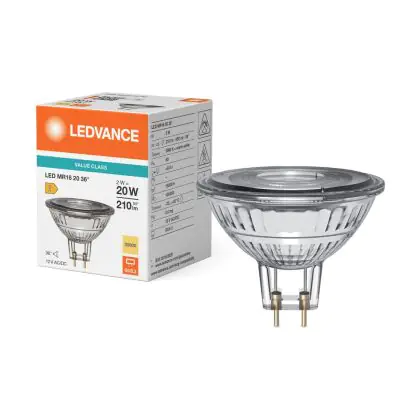 Ledvance LED MR16 P LED Réflecteur GU5.3 PAR16 2W 210lm 36d - 830 Blanc Chaud| Équivalent 20w est le remplacement parfait pour pour vos lampes halogènes traditionnelles GU5.3 de 20W avec un code couleur . Cette lampe a une forme Réflecteur avec un diamètre de 50 mm. Les capuchons des lampes se situent à 5,3 mm les uns des autres. Les ampoules GU5.3 sont plus sécuritaires dans les pièces humides que les lampes halogènes 230 Volts, parce qu’elles fonctionnent sur 12 Volts. Par conséquent, un transformateur est requis pour convertir la tension. Vous pouvez en trouver sous la rubrique "Accessoires" sur cette page de produits. Le transformateur dont vous avez besoin dépend du nombre d’ampoules que vous souhaitez connecter. Notre service clientèle peut vous aider à choisir le bon. Changez pour une LED vous offrira de nombreux avantages !