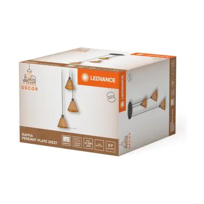 Investissez dans une solution à long terme, de heures en choisissant le Ledvance LED Suspension Luminaire Decor Rotin Plate Brun | Convient pour 3x E27.