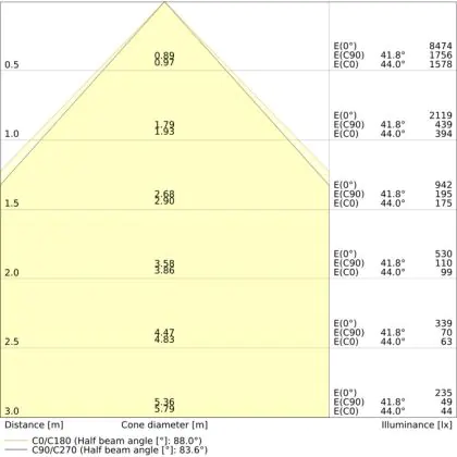 ![]() Le code couleur se compose de l'indice de rendu des couleurs (IRC) et de la température de couleur (Kelvin). Le premier chiffre indique le rendu des couleurs (1 = très mauvais rendu des couleurs, 9 = meilleure authenticité des couleurs). Le deuxième et troisième chiffre indiquent la température de la couleur. Exemple : Le code couleur "830" indique que la lampe a un bon rendu des couleurs (8) et une couleur de lumière blanche chaude (30 = 3000K). |