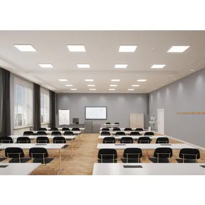 Il existe plusieurs options en termes de températures de couleurs, chacune ayant un domaine d'application différent. Les panneaux LED en 3000K (blanc chaud) sont particulièrement adaptés aux zones générales. La couleur de la lumière 4000K (blanc froid) favorise la concentration. 6500K (blanc lumière du jour) est la meilleure option pour les endroits où un travail détaillé est effectué et où beaucoup de lumière est nécessaire. Vous recherchez spécifiquement un panneau LED pour les postes de travail dans les écoles et les bureaux ? Alors la valeur UGR<19 est obligatoire pour répondre aux exigences de la norme européenne EN 12464-1.
