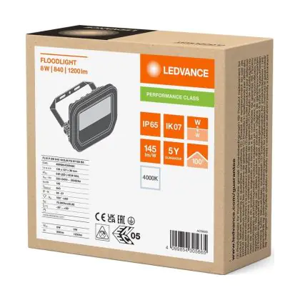 Description Ledvance Projecteur LED Aluminium Noir 8W 1200lm 100D - 840 Blanc Froid | IP66 - Symétrique