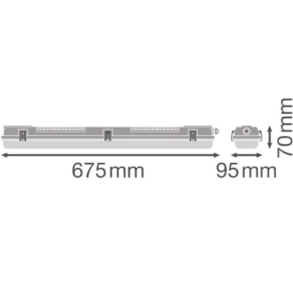 Cette réglette LED d'une longueur de 675 mm est l'alternative durable et économe en énergie à un luminaire fluorescent de même format et avec deux tubes fluorescents de 2x18 Watt.