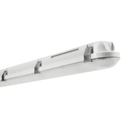 Un élément important des réglettes LED à prendre en compte est la valeur IP. Elle indique dans quelle mesure un produit est étanche à la poussière et à l'eau. L'indice IP44 signifie qu'un appareil est étanche aux éclaboussures et à partir de l'indice IP65, un luminaire LED est totalement étanche à la poussière et à l'eau. La valeur IP de cette réglette LED est : IP65 – Résistant à la poussière et à l'eau (jets d'eau). Si une réglette LED est totalement étanche, vous pouvez parfaitement l'utiliser dans des endroits où elle risque d'être mouillée, comme les écuries, les hangars, les sous-sols, les parkings et les espaces extérieurs.
