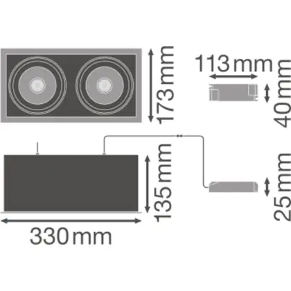 Description Ledvance Spot LED Carré Multi inclinable Noir-Blanc 2x30W 5400lm 38D - 840 Blanc Froid | Diamètre 320x160mm