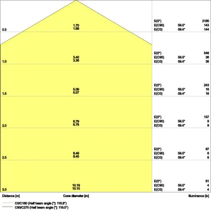 ![]() Le code couleur se compose de l'indice de rendu des couleurs (IRC) et de la température de couleur (Kelvin). Le premier chiffre indique le rendu des couleurs (1 = très mauvais rendu des couleurs, 9 = meilleure authenticité des couleurs). Le deuxième et troisième chiffre indiquent la température de la couleur. Exemple : Le code couleur "830" indique que la lampe a un bon rendu des couleurs (8) et une couleur de lumière blanche chaude (30 = 3000K). |
