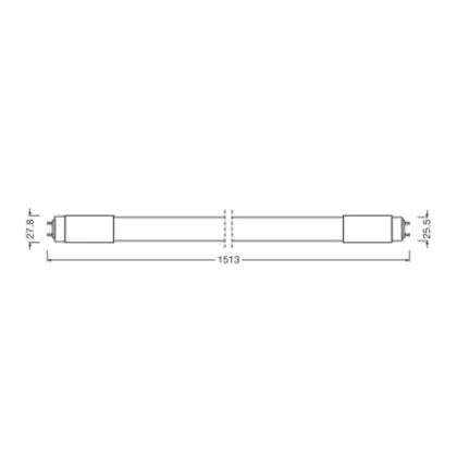 Lorsque vous optez pour la LED, il est important de tenir compte de la longueur et de la puissance de votre tube fluorescent actuel. Ce tube LED de 20 W remplace un tube fluorescent conventionnel de 58 W d’une longueur de 1513 mm. Le diamètre reste identique à celui d’un tube fluorescent T8 : 25,4 mm. Le culot est également le même : G13, avec deux broches espacées de 13 mm.