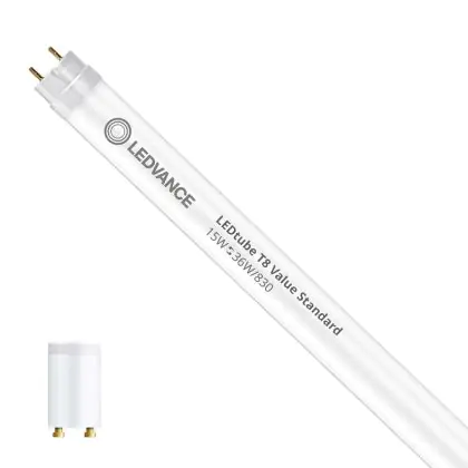 Description Ledvance Tube LED T8 Value (EM/Direct 230V) Standard Output 15W 1620lm - 830 Blanc Chaud | 120cm - Équivalent 36W