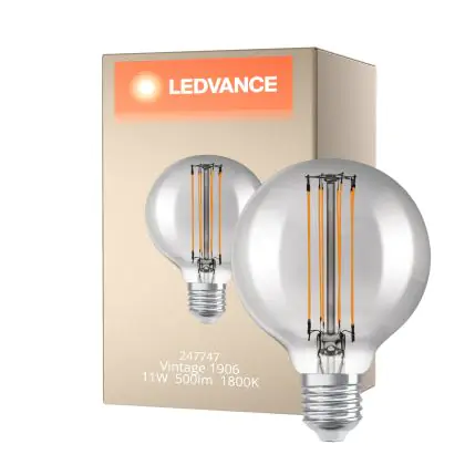 Ledvance Vintage 1906 LED E27 Globe Smoke 11W 500lm - 818 Blanc Très Chaud | Dimmable - Équivalent 42W est le produit de remplacement parfait pour votre ancienne ampoule de 42W avec un culot E27 grâce à sa technologie LED. Passer à la LED vous offrira de nombreux avantages !