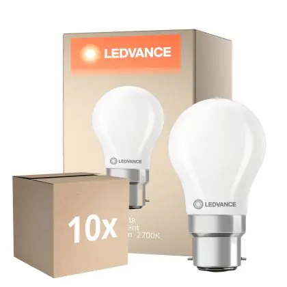 Le Lot 10x Ledvance Classic LED B22 Poire Dépolie 3.4W 470lm - 827 Blanc Très Chaud | Dimmable - Équivalent 40W est l'alternative parfaite à vos anciennes ampoules halogènes conventionnelles. Alimentées en 230v (et donc sans transformateur), ces ampoules sont fiables et robustes.