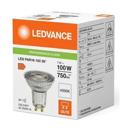 Description Lot 10x Ledvance LED PAR16 GU10 Réflecteur 7W 750lm 36D - 840 Blanc Froid | Équivalent 80W