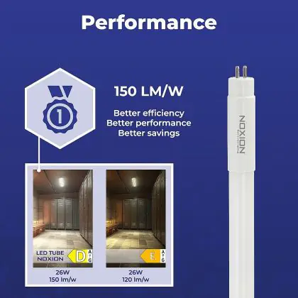 Avec une puissance de 26W, le tube LED Noxion est en moyenne 50% plus économique qu'un tube TL-5 de 54W. En plus de cette réduction de votre consommation d'énergie, vos coûts d'entretien et de remplacement vont également diminuer. La source lumineuse dure deux fois plus longtemps, avec une durée de vie moyenne de 50000 heures. Ce n'est pas pour rien que cette LED porte le label énergétique D. Il existe toutefois une possibilité de rendre votre éclairage encore plus durable, notamment en achetant une réglette led dimmable.