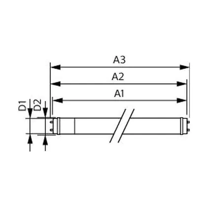 Lorsque vous optez pour la LED, il est important de tenir compte de la longueur et de la puissance de votre tube fluorescent actuel. Ce tube LED de 15.5 W remplace un tube fluorescent conventionnel de 36 W d’une longueur de 1214 mm. Le diamètre reste identique à celui d’un tube fluorescent T8 : 25,4 mm. Le culot est également le même : G13, avec deux broches espacées de 13 mm.