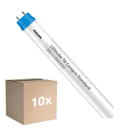 Description Lot 10x Philips Tube LED T8 CorePro (EM/Direct 230V) Standard Output 8W 750lm - 830 Blanc Chaud | 60cm - Équivalent 18W