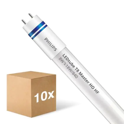 Lot 10x Philips Tube LED T8 MASTER (HF) High Output 8W 1050lm - 840 Blanc Froid | 60cm - Équivalent 18W