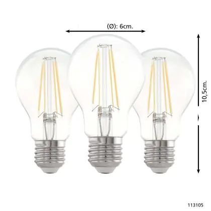 Description Lot 3x Eglo LED Poire E27 Filament Claire 21W 806lm - 827 Blanc Très Chaud | Équivalent 60W