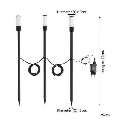 Caractéristiques du Lot 3x Eglo Piquet Lumière Zancaro Aluminium Noir 1W 130lm - 830 Blanc Chaud | IP44