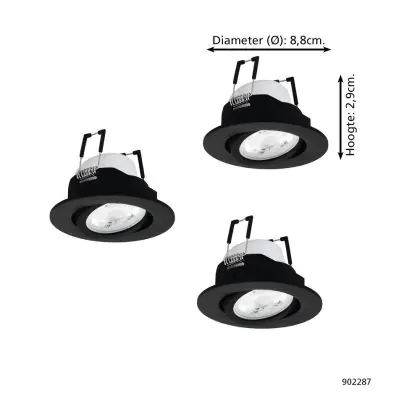 Caractéristiques du Lot 3x Eglo Spot LED Saliceto-Z Aluminium Noir 4.7W 440lm - 827-865 Variable Blanc + RGB | 88mm - Diamètre 68mm - IP20 - Zigbee Dimmable