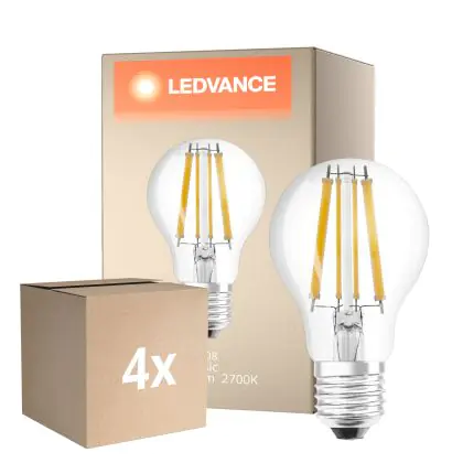 Lot 4x Ledvance Classic LED E27 Poire Filament Claire 11W 1521lm - 827 Blanc Très Chaud | Dimmable - Équivalent 100W