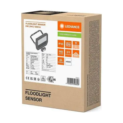 Description Lot 4x Ledvance Projecteur LED Aluminium Noir 8W 1200lm 100D - 840 Blanc Froid | IP65 - Détecteur de Mouvement et de Lumière - Symétrique