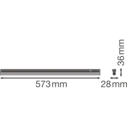 Cette réglette LED d'une longueur de 573 mm est l'alternative durable et économe en énergie à un luminaire fluorescent de même format et avec deux tubes fluorescents de 1x14 Watt.