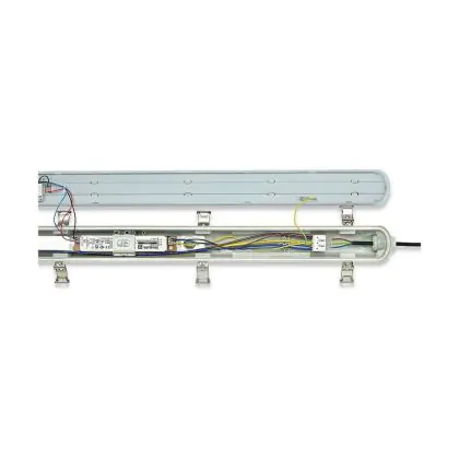 Un élément important des réglettes LED à prendre en compte est la valeur IP. Elle indique dans quelle mesure un produit est étanche à la poussière et à l'eau. L'indice IP44 signifie qu'un appareil est étanche aux éclaboussures et à partir de l'indice IP65, un luminaire LED est totalement étanche à la poussière et à l'eau. La valeur IP de cette réglette LED est : IP65 – Résistant à la poussière et à l'eau (jets d'eau). Si une réglette LED est totalement étanche, vous pouvez parfaitement l'utiliser dans des endroits où elle risque d'être mouillée, comme les écuries, les hangars, les sous-sols, les parkings et les espaces extérieurs.