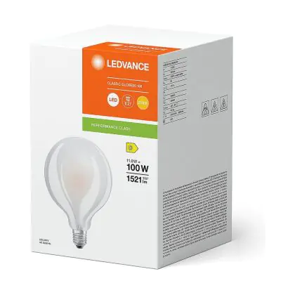 Lot 6x Ledvance Classic LED E27 Globe Filament Dépolie 11W 1521lm - 827 Blanc Très Chaud | Équivalent 100W est le produit de remplacement parfait pour votre ancienne ampoule de 100W avec un culot E27 grâce à sa technologie LED. Passer à la LED vous offrira de nombreux avantages !