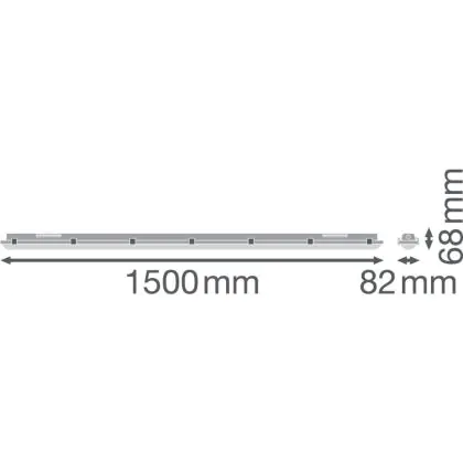 Cette réglette LED d'une longueur de 1500 mm est l'alternative durable et économe en énergie à un luminaire fluorescent de même format et avec deux tubes fluorescents de 1x58 Watt.