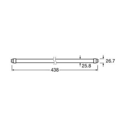 Lorsque vous optez pour la LED, il est important de tenir compte de la longueur et de la puissance de votre tube fluorescent actuel. Ce tube LED de 5.4 W remplace un tube fluorescent conventionnel de 15 W d’une longueur de 451 mm. Le diamètre reste identique à celui d’un tube fluorescent T8 : 25,4 mm. Le culot est également le même : G13, avec deux broches espacées de 13 mm.
