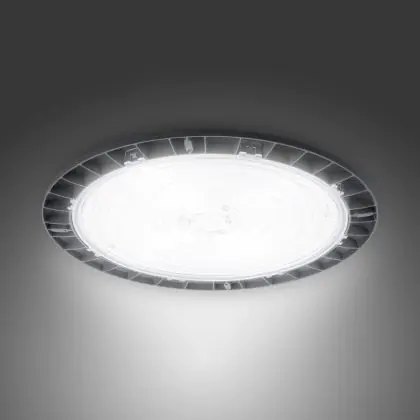Cet high bay a une IP de IP65 – Résistant à la poussière et à l'eau (jets d'eau) et un IK de IK07 - 2 Joule.