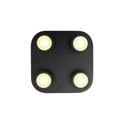 Nordlux Clyde Plafonnier 4-Spot Métal Noir 14W 950lm - 827 Blanc Très Chaud | 85mm - 3 Niveaux De Gradation Dimmable