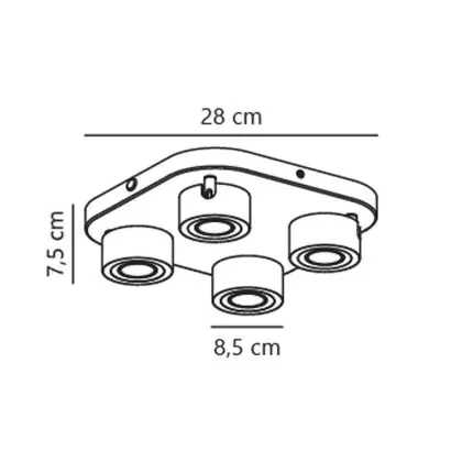 Caractéristiques du Nordlux Clyde Plafonnier 4-Spot Métal Noir 14W 950lm - 827 Blanc Très Chaud | 85mm - 3 Niveaux De Gradation Dimmable