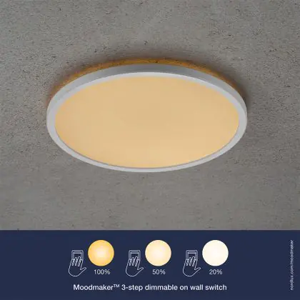 Oja est un plafonnier ultra-plat de la marque Nordlux. Il a une application universelle, avec LED intégrée et fonctionnalité Moodmaker™. Ceci vous permet de faire varier l'intensité du produit en 3 étapes sans variateur, uniquement avec un interrupteur mural ordinaire. Oja a une très longue durée de vie de 25 000 heures et une lumière agréable blanc chaud de 2700K.