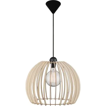 Cette suspension au design moderne a un abat-jour composé de lattes de bois qui permettent une répartition agréable de la lumière. Lorsque l'ampoule est visible entre les lattes, il est recommandé d'installer une ampoule décorative. Le luminaire est idéal pour mettre au-dessus de la cuisine ou de la table à manger. Veuillez notez que l'ampoule n'est pas incluse.