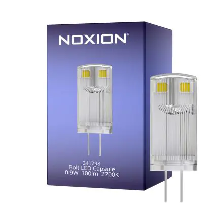 Noxion Bolt LED Capsule G4 0.9W 100lm - 827 Blanc Très Chaud | Équivalent 10W est le remplacement parfait pour pour vos lampes halogènes traditionnelles G4 de 10W avec un code couleur 827 Blanc Très Chaud. Cette ampoule a une forme Capsule et les capuchons des lampes se situent à 4 mm les uns des autres.