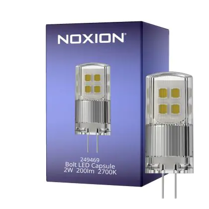 Noxion Bolt LED Capsule G4 2W 200lm - 827 Blanc Très Chaud | Dimmable - Équivalent 21W est le remplacement parfait pour pour vos lampes halogènes traditionnelles G4 de 21W avec un code couleur 827 Blanc Très Chaud. Cette ampoule a une forme Capsule et les capuchons des lampes se situent à 4 mm les uns des autres.