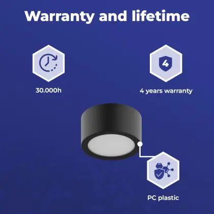 Avec la garantie tout compris 4 ans, vous pouvez être sûr que ce downlight LED constitue une solution d'éclairage de qualité.