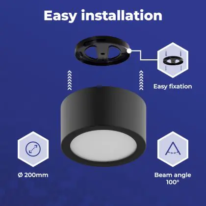 | Nom du fabricant | Noxion LED Downlight Hera Surface Mounted Black 21W 2400lm - 827-840 CCT | 200mm | |