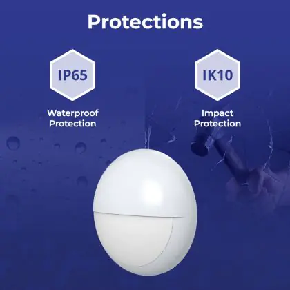 ![]() La valeur IK représente la résistance aux chocs et la protection contre le vandalisme. Elle est exprimée avec 2 chiffres (IK00 - IK10). Les produits portant la mention IK00 ne sont pas protégés contre la résistance, tandis que les produits portant la mention IK10 offrent une protection contre les impacts de 20 joules et sont également anti-vandalisme. |