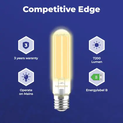 Investissez dans une solution à long terme, de 25000 heures en choisissant le Noxion LED HID Tubulaire Filament E40 38W 7200lm - 730 Blanc Chaud | Équivalent 125W.