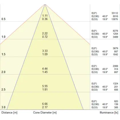 Un angle de diffusion est également appelé angle de rayonnement et indique l'angle du faisceau lumineux provenant d'une source lumineuse. Plus l'angle de diffusion en degrés (D) est petit, plus le faisceau est étroit. Vous voulez en savoir plus? Alors lisez notre blog.