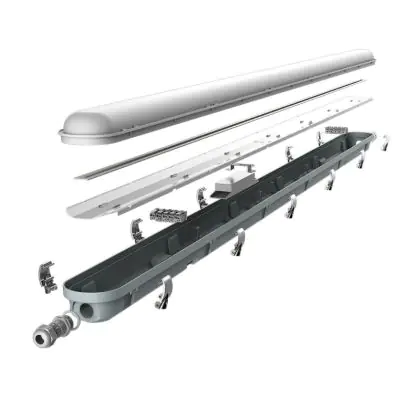 Un élément important des réglettes LED à prendre en compte est la valeur IP. Elle indique dans quelle mesure un produit est étanche à la poussière et à l'eau. L'indice IP44 signifie qu'un appareil est étanche aux éclaboussures et à partir de l'indice IP65, un luminaire LED est totalement étanche à la poussière et à l'eau. La valeur IP de cette réglette LED est : IP65 – Résistant à la poussière et à l'eau (jets d'eau). Si une réglette LED est totalement étanche, vous pouvez parfaitement l'utiliser dans des endroits où elle risque d'être mouillée, comme les écuries, les hangars, les sous-sols, les parkings et les espaces extérieurs.