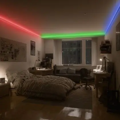 Avec ce kit complet de rubans LED, vous pouvez créer l'ambiance parfaite dans n'importe quel espace, sans scintillement. Vous pouvez placer cet ruban LED adhésif sur des surfaces planes ou avec des angles. Pour l'adapter à n'importe quel emplacement, raccourcissez le ruban LED en la coupant simplement au niveau des lignes de découpe indiquées. L'installation ne prend que 10 minutes !