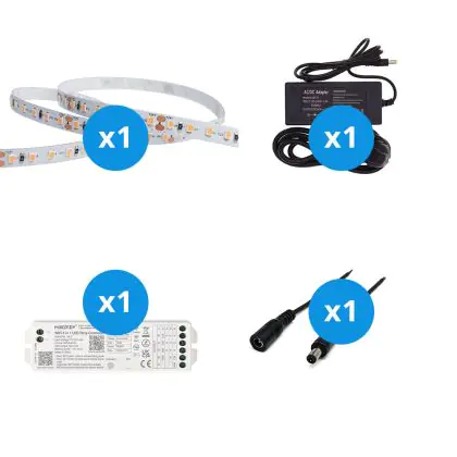 Le grand avantage de cet kit complet est qu'il comprend tous les accessoires nécessaires pour installer le ruban LED dans votre maison ou vos locaux professionnels. Nous vous fournissons la matériel nécessaire pour l'installation du ruban LED. Ensuite, vous branchez le tout sur une prise électrique standard. Vous trouverez toutes les informations nécessaires dans notre blog sur l'installation. Ce kit comprend :