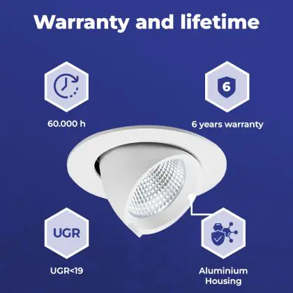 Avec la garantie tout compris 6 ans, vous pouvez être sûr que ce downlight LED constitue une solution d'éclairage de qualité.