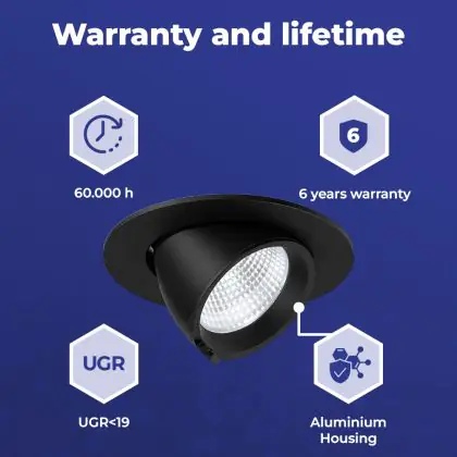 Avec la garantie tout compris 6 ans, vous pouvez être sûr que ce downlight LED constitue une solution d'éclairage de qualité.